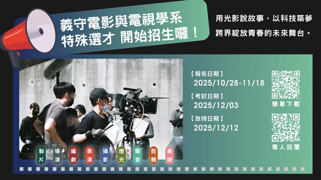 【公告】電影與電視學系{特殊選才}招生中!