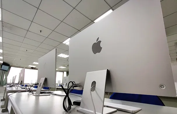 Designed for digital creation and film/video post-production. The room features cutting-edge iMacs and a broadcasting teaching system, supporting multimedia arts and visual design courses.