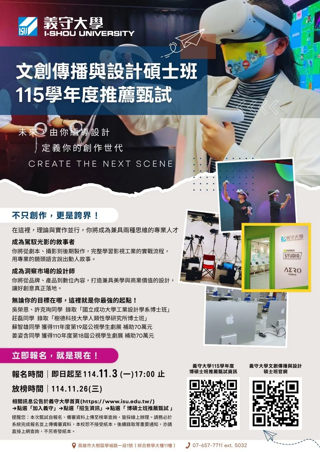 本校「文創傳播與設計碩士班」推薦甄試招生中